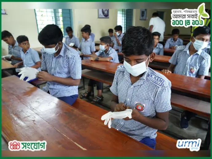 The “100 On 100-SELF & ENVIRONMENTAL CLEANLINESS PROGRAM” is a signature hands-on youth engagement climate response initiative led by the Songjog Foundation & Urmi group. This program is specifically designed to instill lasting values of personal hygiene, campus cleanliness, and environmental sustainability among school students. Over a month-long period, the program strategically involves 100 students per participating school, focusing on structured, practical activities. By emphasizing dignity in manual work and fostering environmental consciousness, 100 on 100 transforms students into proactive leaders and effective change agents for a cleaner, healthier future in their communities.